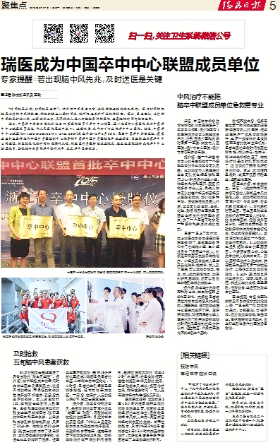 瑞医成为中国卒中中心联盟成员单位