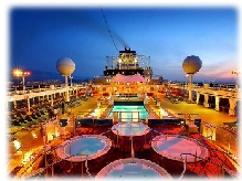 邮轮全天航行在海上,您可尽情享受星级邮轮的各项娱乐设施,也可以悠闲地躺在到泳池畔的躺椅上,静静地享受那刻的碧海蓝天。