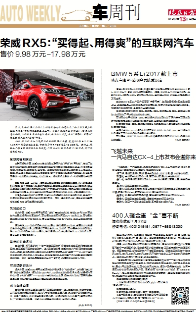 荣威RX5:“买得起、用得爽”的互联网汽车
