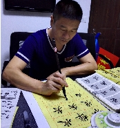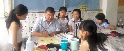 新居民李世星自掏腰包购买教材、器具,义务担任书法老师