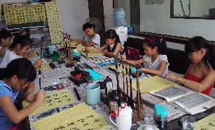 学习书法,最基本也是最难的是静心。学员大多是孩童,正是爱玩爱闹的年纪。要让他们一个上午静下心来学书法,可不是一件轻松的事。