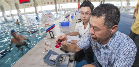 夏日炎炎,游泳场所成了市民的避暑胜地。泳池水质是否达标、是否做好相应的消毒至关重要。