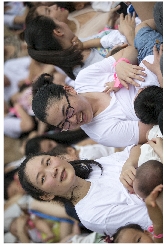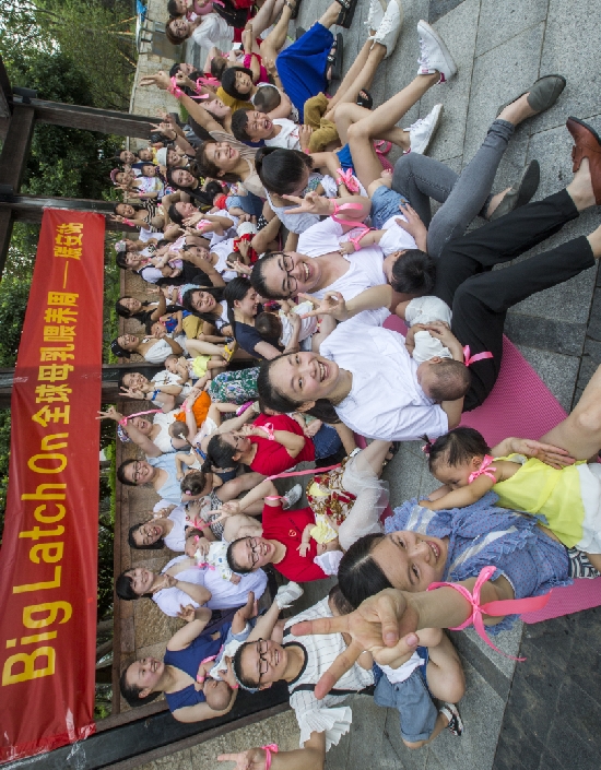 相关链接:The BIG LATCH ON(妈妈同时哺乳)是全球性活动。在每年的8月1日至7日的“世界母乳喂养周”,来自世界各地的妈妈在同一时间进行哺乳,在设定的1分钟内共同用母乳哺育孩子。今年全世界有超过170个国家和地区的母乳妈妈参加“母乳喂养快闪”公益活动,呼吁公众支持母乳喂养,关注母婴健康问题。