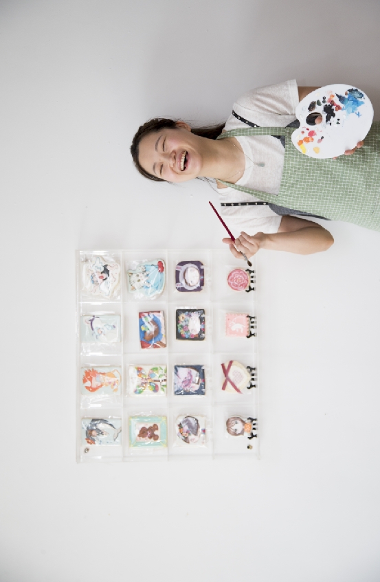 今年3月份,王芝办起自己的小小工作室,开始承接糖霜饼干定制业务。“饼干制作是很简单,照着烘焙书就能完成,但是糖霜饼干工序复杂得多。很多时候,我一下午闷在工作室,也只能做出一套约四五个画面比较复杂的饼干。”王芝一边演示饼干绘画过程,一边说。从饼干烘烤完成开始算起到糖霜饼干完成,饼干还需经历铺面、转印、上色粉、上色等工序,每用糖霜铺一次,都要烘1个多小时。
