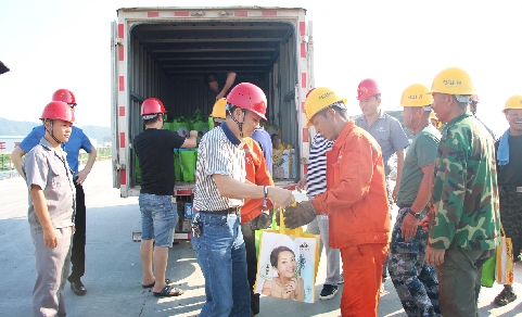 为更好传递市委市政府对城市建设做出重要贡献的新居民建设者的关怀之情,同时为广泛动员社会各界为高温中坚守一线建设岗位的新居民创造一个“安全、清凉、健康”的工作环境,8月16日下午,市新居民服务管理局、市交通工程建设办公室一行人来到飞云江六桥(104国道西过境瑞安段)建设工地施工现场,为一线的建筑工人们送去了价值2万余元的“夏日礼包”。