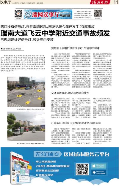 瑞南大道飞云中学附近交通事故频发