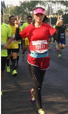 跑上复兴大桥时,我被瑞安马拉松特跑团另一位美女跑者阿梅赶上。她也是一位不可小瞧的实力派,记得去年台州马拉松时,我在30多公里处被她赶超。