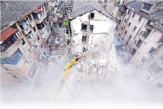 “‘两千六’开始拆了。”昨日,在沿江新村危旧房改造项目现场,大型机械设备挥舞着长臂,危旧房应声倒下。