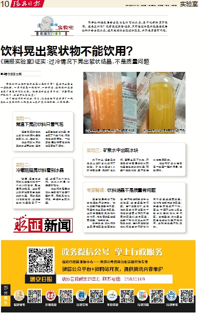 记者随后采访了瑞中物理老师徐开春。“饮料结晶不是质量有问题,而是液体出现过冷现象,此时只要受到晃动等外力作用,液体便会迅速凝固结晶。”徐开春说。
