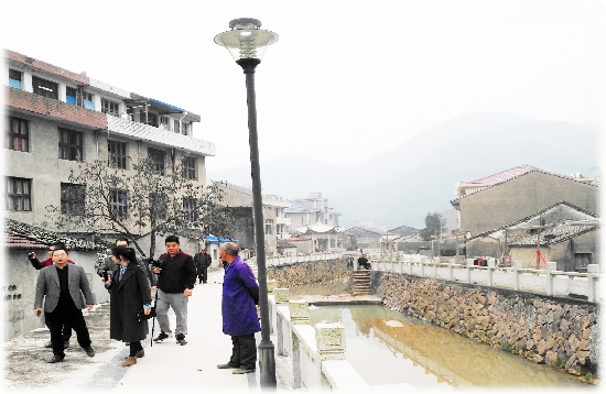 林川镇林源村以红枫古道闻名。村“两委”巧借优势,结合美丽乡村建设,大力发展旅游业,增加景点,吸引游客。去年,该村投入近100万元,全面修复林源溪旁边的宗祠,如今宗祠外观和溪流堤坝已修复完毕,站在远处望去,景色别有风味。巡查人员由衷地称赞眼前的景色。