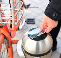 借车卡就是我们的名片,上面印有瑞安外滩的美景图,还有公司的热线电话,拨打这个电话市民可咨询关于我们的信息。通过借车卡或市民卡,市民便可开通公共自行车借车功能,实现绿色出行。