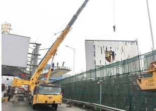 本报讯(记者 林晓)1月10日上午,在G15高速公路瑞安收费站,头戴安全帽的工人攀爬到20来米高的广告牌上,用切割机切割广告牌及钢管,3台吊车同时工作,把切割下来的广告牌运送到地面……