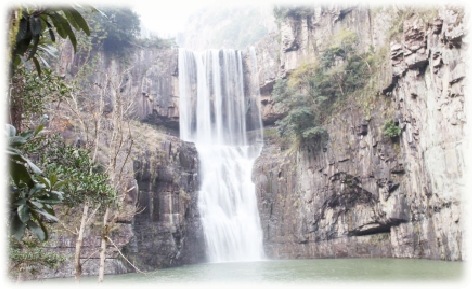 只记得下去的小山路有好长一段特别陡峭,脚下茂密树木遮蔽中的山涧深不见底。一步一步地挪下去,走得人胆战心惊、大汗淋漓,到了底下才松了一口气。不知是水不多,还是没仔细看,雄伟的一漈居然没有留下一点印象。只记得二漈打里面经过,看过去像个水帘洞……到了发电站那里,那中巴车已在等我们回家。