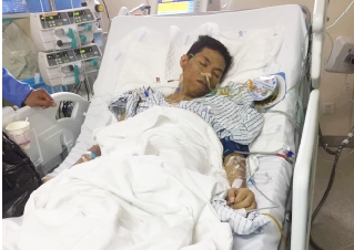 薛孝雷完成手术后在重症监护室内