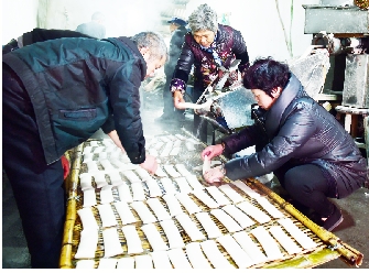 昨日,在平阳坑老街的谢庆栋年糕作坊内,大家正忙着做年糕。记者了解到,平阳坑不少农家每年要做一两百公斤大米的年糕。