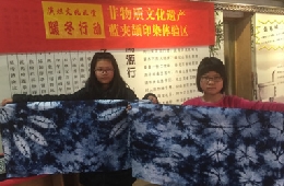 未成年人在溪坦文化礼堂体验蓝夹缬印染