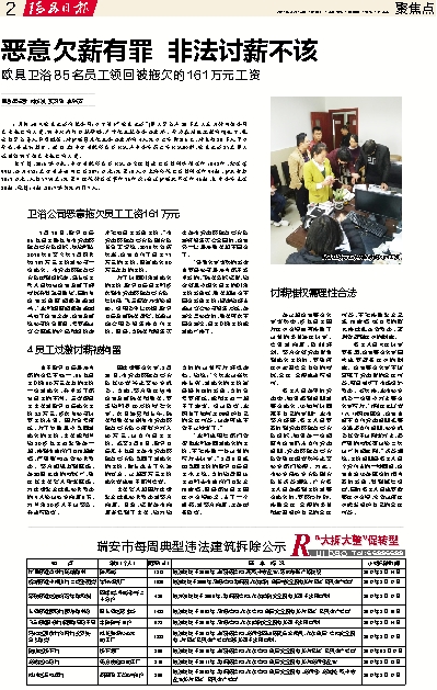 “我们也相信部门会帮助我们追回被拖欠的工资,不能采取一些过激的行为去讨薪。”3月6日成功拿回工资的欧具卫浴员工小王说,当时他曾阻止工友们去市政府门口聚众拉横幅,但是部分员工因法律意识缺乏,走了一个极端,被警方拘留,正在接受教育。