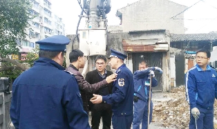 日前,安阳中队组织人员开展“亮剑2017”专项整治行动,拆除解放东路5号楼楼下人行道上的违章烟囱。据了解,今年1月份,安阳中队接到市民举报,解放东路5号楼楼下有5家餐饮店将烟囱搭在人行道上,经执法人员现场勘查,现场给5家小餐饮店发放限期整改通知书,一周后,执法人员再次到现场查看,发现只有一家自行拆除,执法人员对各店主进行教育后,予以强制拆除。