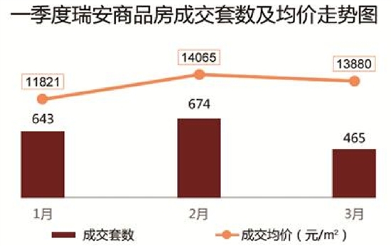2017年一季度,瑞安商品房累计成交1782套,同比下降36%。