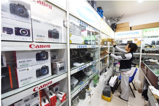 同时,网上销售渠道也挤走了实体店的市场份额。捷诚负责人王女士表示,现在数码卡片相机被智能手机取代,数码单反相机又受到电商冲击。网上可以比较价格,还有优惠,加上相机都有官方定价,很难掺杂水分,相比之下,实体店优势逐渐变弱。