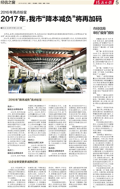 2017年,我市“降本减负”将再加码