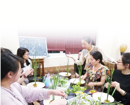 学员潘晓飞在学员中尤其引人注目,她是个怀有8个月身孕的准妈妈了。“上一堂插花课,不仅学习到了插花知识,还学到了一些传统文化方面的知识。上课给宝宝做胎教挺好的。”她说。