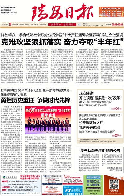瑞安日报 要闻 00001 无标题 2017-5-5 2