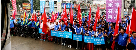 10时30分许,活动正式开始。在简单的启动仪式后,仙降自行车运动协会会员们从金光堡河出发,一路播放“剿灭劣V类水”宣传口号,沿着革兴东街一路前进,骑行32公里,途经38个村。仙降自行车运动协会服务队队长蔡日升说:“自从开始治水以来,仙降的河道变清了,天变蓝了,空气变得清新了。今天,我们要骑遍仙降的各个村,把剿灭劣V类水的宣传口号和精神带给每一位村民。”