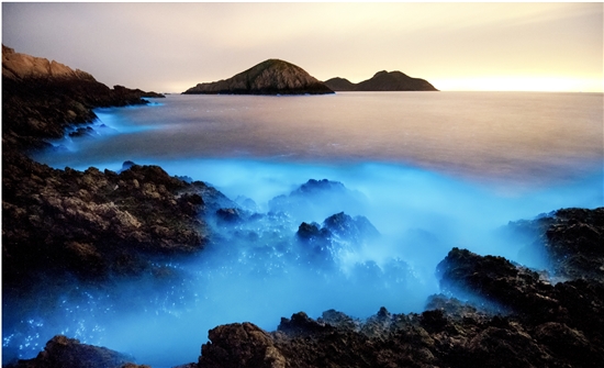 暗夜中,绵延数公里的海岸边泛着荧光蓝,这是科幻电影中的桥段吗?实际上,它出现在北麂海域。