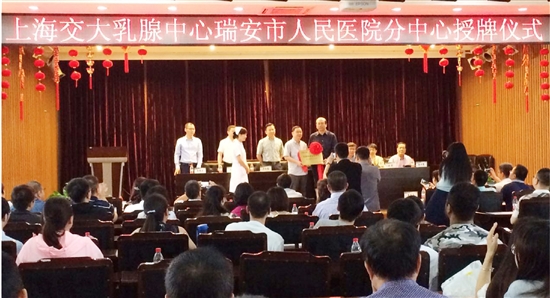 近日,上海交通大学医学院附属瑞金医院乳腺疾病诊治中心在市人民医院(以下简称“瑞医”)成立瑞安分中心。这标志着,市人民医院乳腺疾病诊治和上海大医院实现接轨。今后,瑞安及周边地区的乳腺疾病患者在瑞安就可以享受到上海专家的诊疗服务。