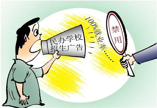 据《华商报》报道,陕西省西安市教育局近日下发通知,要求民办学校发布的招生简章和广告,不得使用“最大”“最好”“100%就业率”等描述性用语。 (陶小莫)
