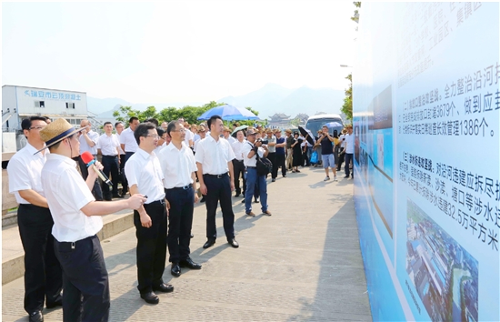 在随后召开的推进会上,我市市委书记陈胜峰就剿灭劣Ⅴ类水工作作典型发言。据悉,面对全省最重的剿灭劣Ⅴ类水任务,我市按照省、温州市的决策部署,加码加压,围绕“6月底消除断面,年底全面剿灭”的目标,强化系统治水、科学治水、依法治水、全民治水、长效治水,将剿灭劣Ⅴ类水工作列为十大责任捆绑攻坚行动之首,完成河道清淤181.8万立方米、断面周边清淤104万立方米,建成污水管网117公里,完成江北污水处理厂扩容提标工程、江南污水处理厂提标改造工程桩基施工,严查环境违法案件167起、移送公安机关15件,引导2万多名师生成立环保志愿者分队,创新实施排污口“四色标识”管理、取水口“身份证”式管理、全天候智慧监管,打响“861”剿劣决胜战。目前, 我市6个省、市控断面的主要污染物平均指标连续6个月达到Ⅴ类水以上标准,省控塘下陈宅断面和市控白岩桥断面成功销号,全市444个劣Ⅴ类水体中有408处已达到验收标准。