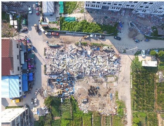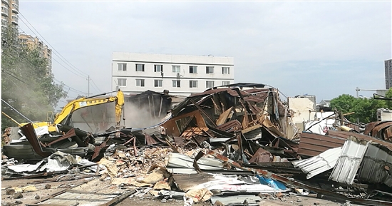 8月15日上午10时许,该片违章建筑全部拆除完毕。