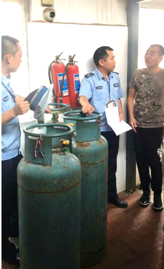 酒店是使用液化气的“大户”,而莘塍辖区内有15家大型酒店。日前,该中队执法人员到各大酒店排查液化气安全隐患,重点检查营业场所是否符合用气安全标准,50公斤装钢瓶数量是否超量,软管是否穿越墙壁、窗户和门,是否使用防爆型照明灯电器设备,电器开关是否设在室外等安全情况。