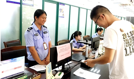 据悉,今年7月下旬,市公安机关承接全省户籍窗口“非现支付”试点工作,并率温州之先,在飞云派出所开展户籍窗口身份证业务“非现支付”试点。目前,试点工作已初步成功,并于8月18日开始在全市各户籍窗口推广。