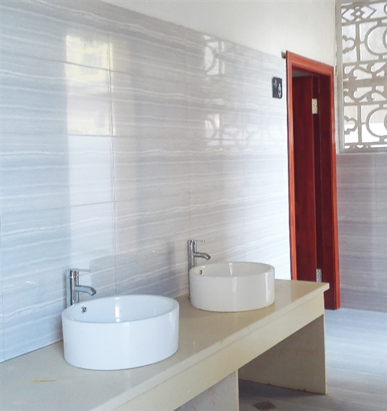 相比新坊村公厕的“务实”风格,赵宅村公厕设计更显“高大上”。经过粉刷墙壁、修补地面、重做下水道等系列改造,赵宅村公厕通体呈姜黄色,明亮的管理室后面是宽敞的洗手台,男厕、女厕均安装了红棕色防火门,小便器使用感应式冲水装置,4个蹲便器厕位完全隔断,一个坐便器厕位两边安装了不锈钢扶手,方便残障人士使用。
