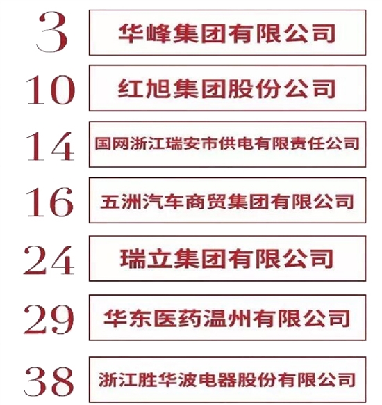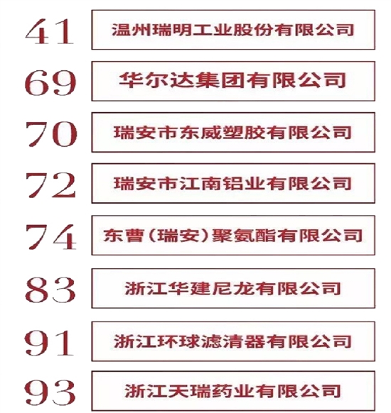 温州市百强企业榜单 瑞安15家企业入选