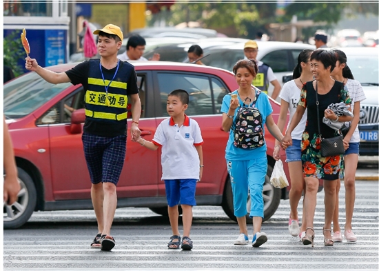 上午8时30分许,早高峰,车辆、行人均行色匆匆。站了10多分钟,记者几乎没有听到车辆喇叭声。9月1日起,市区禁鸣区扩大,不少急性子的车主变得有耐心了,不再动不动就按喇叭。红灯停绿灯行,车辆、行人按照交通指示灯有序通过路口,交通劝导员盯了半天也没使上什么力。