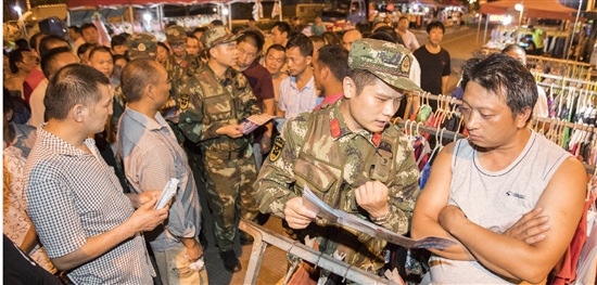 连日来,市公安边防大队机动中队官兵深入辖区开展安全隐患巡查、宣传防诈骗、集中整治各类治安热点、难点问题,为驻地企业发展打造和谐安定的外部环境。图为边防官兵在瑞安电镀园区外宣传防诈骗知识。 (记者 孙凛)
