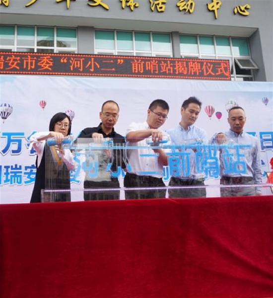 本报讯(通讯员 吴欢 记者 李心如)温州市“万名青年治水行”统一巡河日暨共青团瑞安市委“河小二”前哨站揭牌仪式,日前在塘下镇举行。来自全市的“河小二”代表、青年治水突击队代表、青年企业家代表和高校志愿者代表等200余人参加当天活动。活动现场,市领导为共青团“河小二”前哨站揭牌。