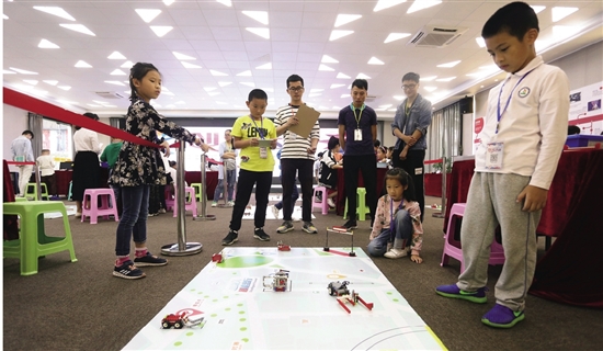 10月14日,由市科学技术协会、市教育局、共青团瑞安市委、瑞安日报社主办,市创客协会、市电商文创园、酷玩星球青少年创客中心承办的市首届青少年创客大赛在市电商文创园拉开帷幕。大赛为期两天,以“智造,创想未来”为主题,来自全市8所初中、24所小学、13所幼儿园共109组405名青少年参加了此次大赛。