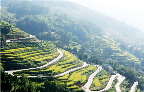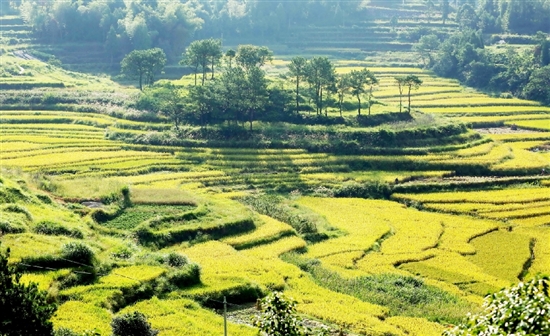 秋意渐浓,我市平阳坑、马屿、林川等地的单季稻丰收在望,金黄色的极富线条感的梯田构成了一幅幅美丽的图画。 (记者 庄颖昶)