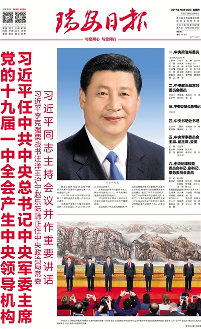 党的十九届一中全会产生中央领导机构