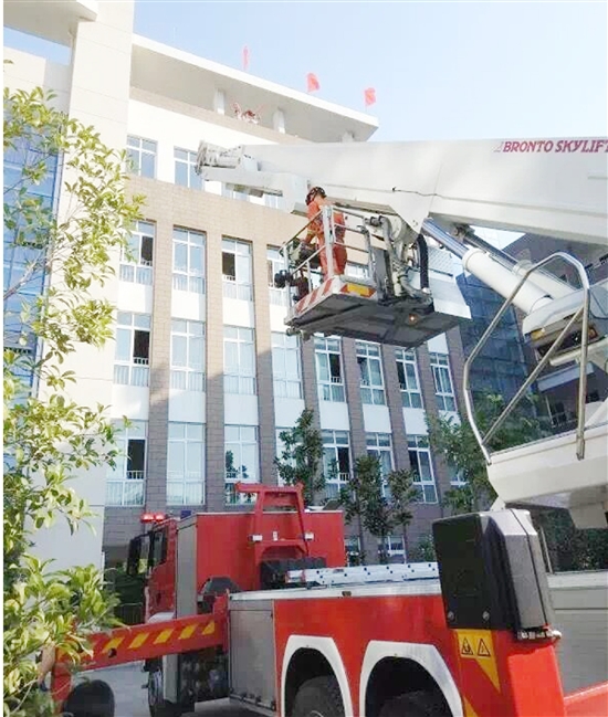 9月27日下午,瑞安市校园消防知识培训暨消防安全应急演练观摩会走进江南实验学校,分别开展了疏散演练、登高救人演练和现场灭火演练,现场还举行了全国首届中小学生消防安全知识网络大赛颁奖仪式(瑞安赛区)和消防教材进校园授书仪式。