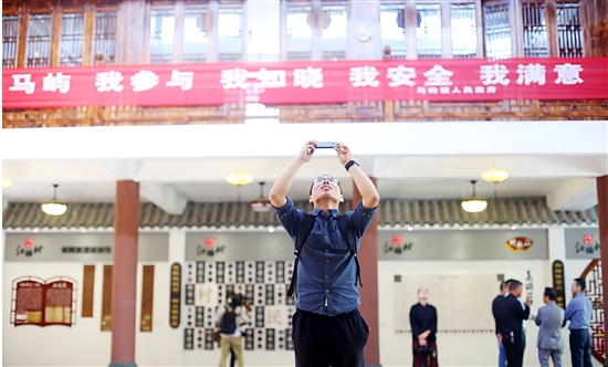 随后,记者们走进马屿镇江桥村文化礼堂,参观了百姓志愿服务驿站、百姓书房、百姓健身房等场馆。该文化礼堂以“至美乡村·乐在江桥”为主题,由“乐见民风、乐业安居、乐闻村史、乐享山水”四大板块组成。江桥村浓厚的文化底蕴、乡村文化建设、精致的文化礼堂,深深吸引了记者们,大家纷纷拿出相机、手机,定格难忘的瞬间。