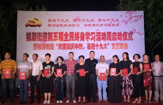 以锦湖社区学校为主体,以文化礼堂、道德讲堂、新居民讲堂、新居民女性讲堂等各类讲堂为支撑,开设青少年、企业职工、老年、妇女、村居干部、社区居民等多种教育培训,开展宣传、志愿服务、青少年教育、文艺演出、民俗节日、老年活动、全民终身学习等各类活动,年参与10000多人次,在提升锦湖群众学历层次和文化素养等方面取得了极大成效,荣获全国农村优秀学习型街道称号。
