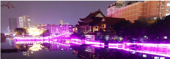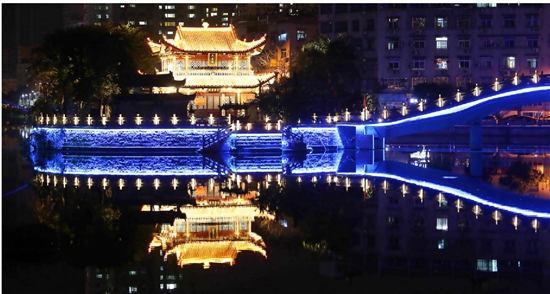 有市民看到如此美景赋诗一首:湖波倒影映文昌,拱瑞霓虹盛放光。咏赞齐柯疏浚道,塘河夜景数安阳。 (记者 庄颖昶)