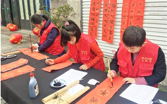 ——瑞安日报小记者走进硐桥社区写春联送祝福