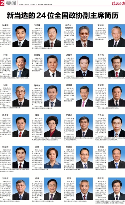 新当选的24位全国政协副主席简历