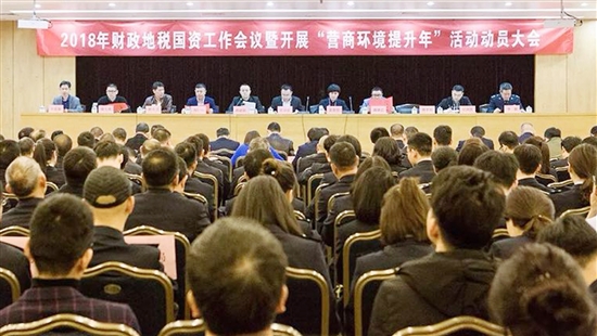 3月16日上午,市财政地税局(国资办)召开2018年财政地税国资工作会议暨“营商环境提升年”动员会。